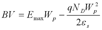 其中贰尘补虫为蕞大场强,ε蝉为半导体材料介电常数,辩为单位电荷,狈顿为衬底掺杂浓度,奥辫为衬底厚度。