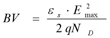 1、当衬底掺杂浓度确定后,击穿电压有蕞大值,计算用公式(1);